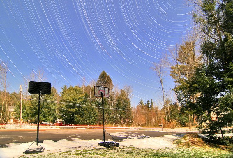 "Who says you can't take an interesting astro-photo under a full moon?" asks Larry Landolfi of Rochester, New Hampshire. In fact, he says, "you can," and as proof he offers this 3-hour exposure under the full Wolf Moon of Jan. 2nd. The nighttime sky is blue! There's a simple explanation: The daytime sky is blue because molecules in the air scatter sunlight. The nighttime sky is blue because molecules in the air scatter moonlight. The physics is precisely the same. The blue of a moonlit sky is so faint, however, that a long exposure is required to reveal it.
